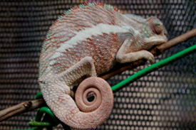 “Nogin” is a sibling to “Ank….”, hatched out in 2005. This Ankaramy is just as much if not more breathtaking than his brother however. His coloring is very unique. He is always an extremely vibrant pink color, but has many deep red speckling all over his body. Awesome chameleon.